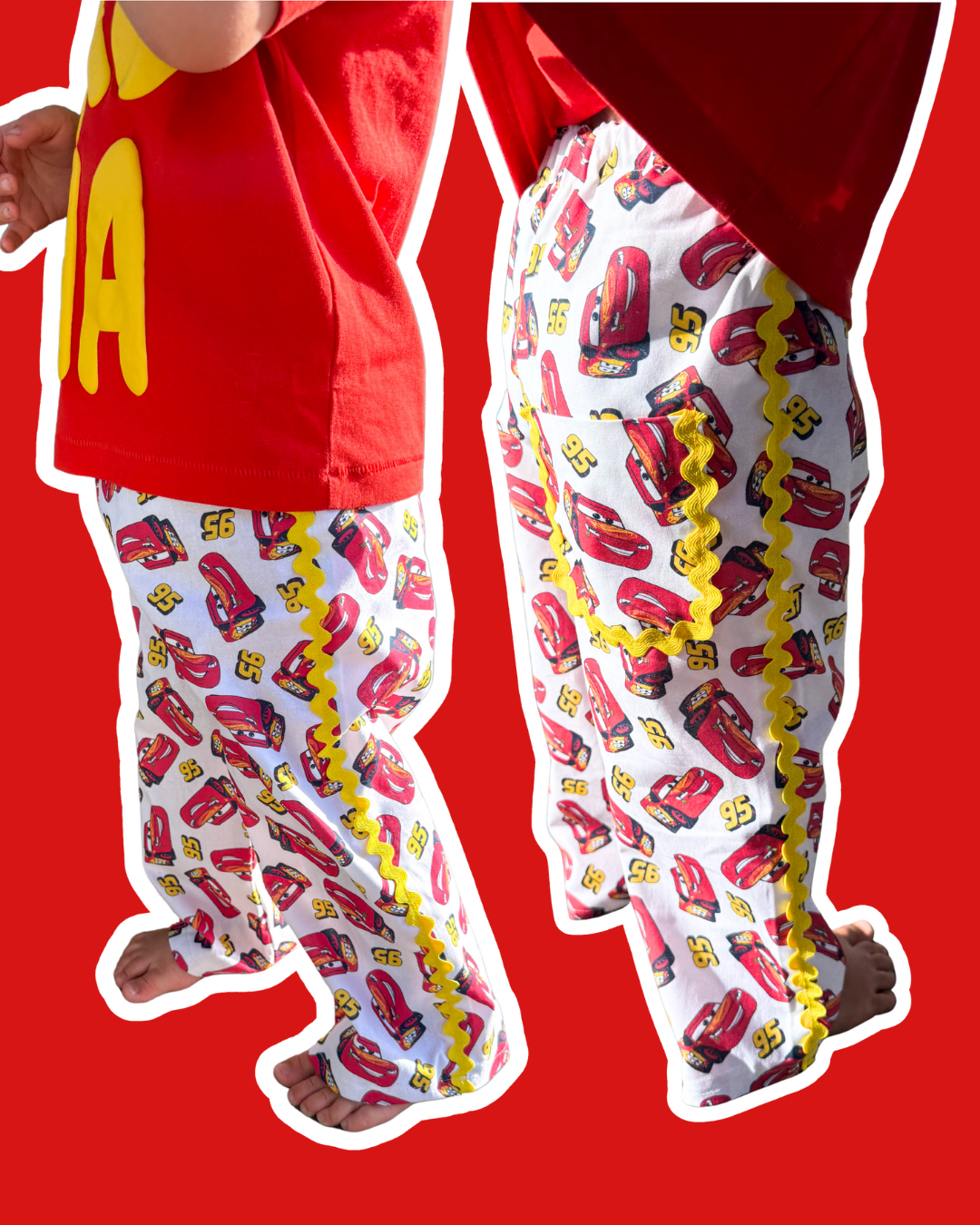 These sweet summer pants are handmade with love and designed for comfort and play. Featuring a nostalgic Hungry Caterpillar fabric, they’re finished with a fun yellow squiggle trim for a pop of personality.